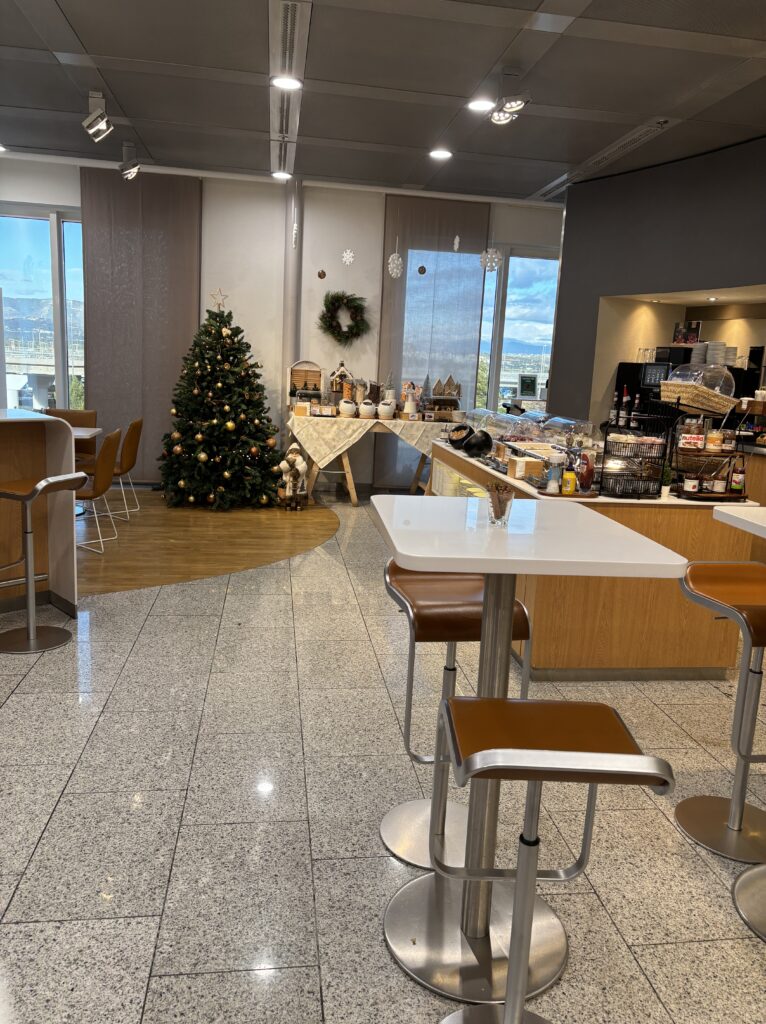 奥にフードカウンターがあり、クリスマスだったのでツリーが飾られていました。それ程広くはありませんが、私が利用した時は空いていました。