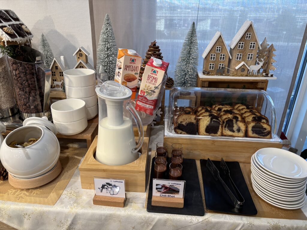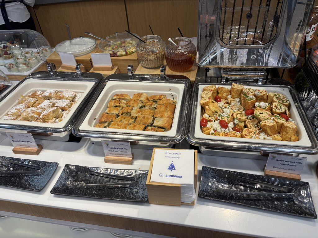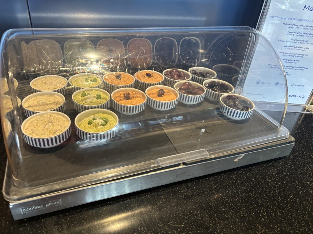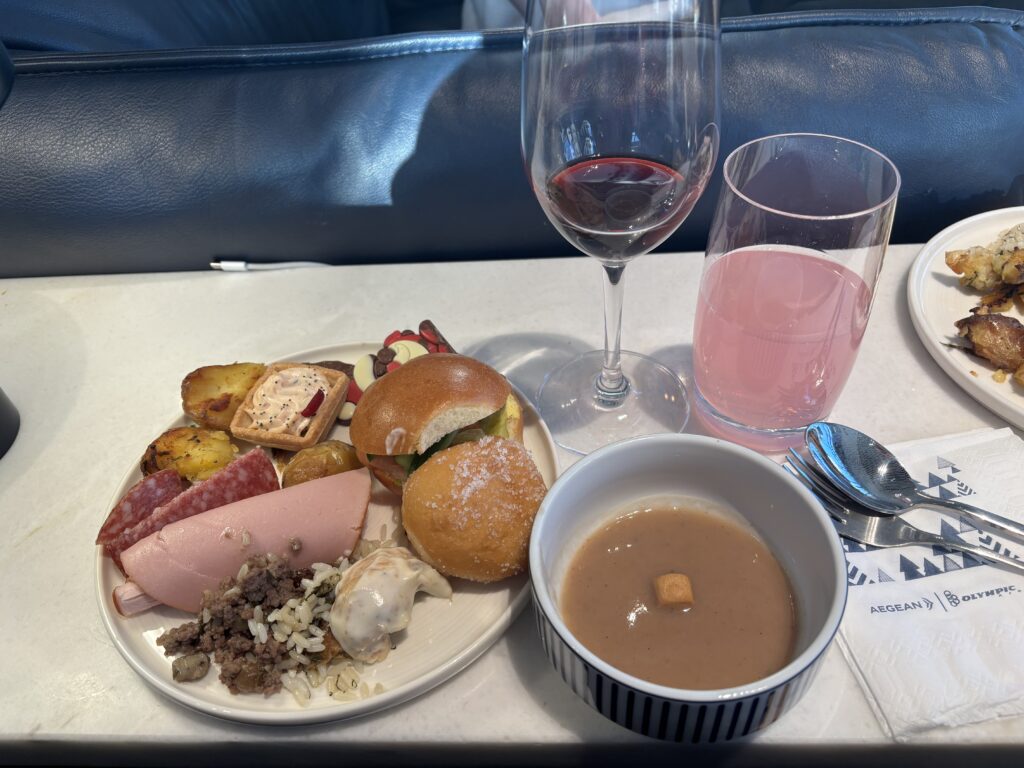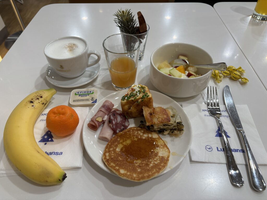 サントリーニ島へのフライトは国内線なので、ラウンジが使えるか、ラウンジの充実度も心配でしたが、国内線もシェンゲン国際線も一緒だったので、普通にラウンジ利用できたし、上記の通り食事もできる内容でした!ラウンジで朝食食べればいいや~と思っていたので、ホテルは朝食なしにしましたが正解!空港へは早く着いてた方が安心だし、朝食なしなら身支度してすぐ出られるので、時間を有効に使えました。