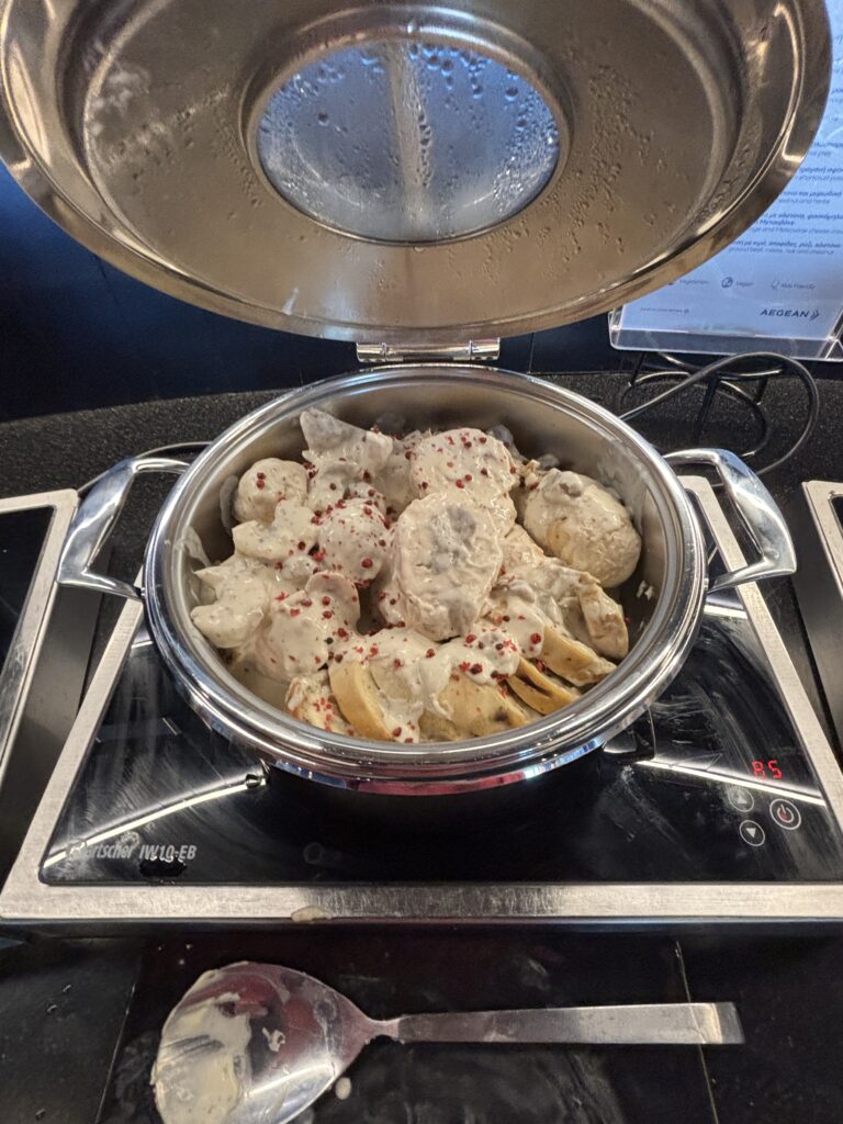 美味しくいただきました。アテネ→サントリーニ島はあっという間に着くので、出発前に朝ご飯食べられて助かりました!