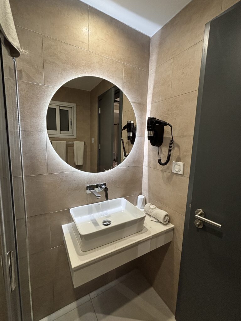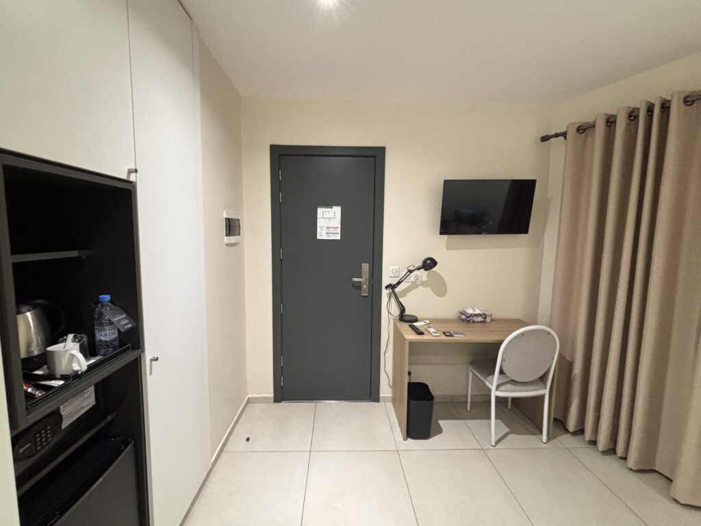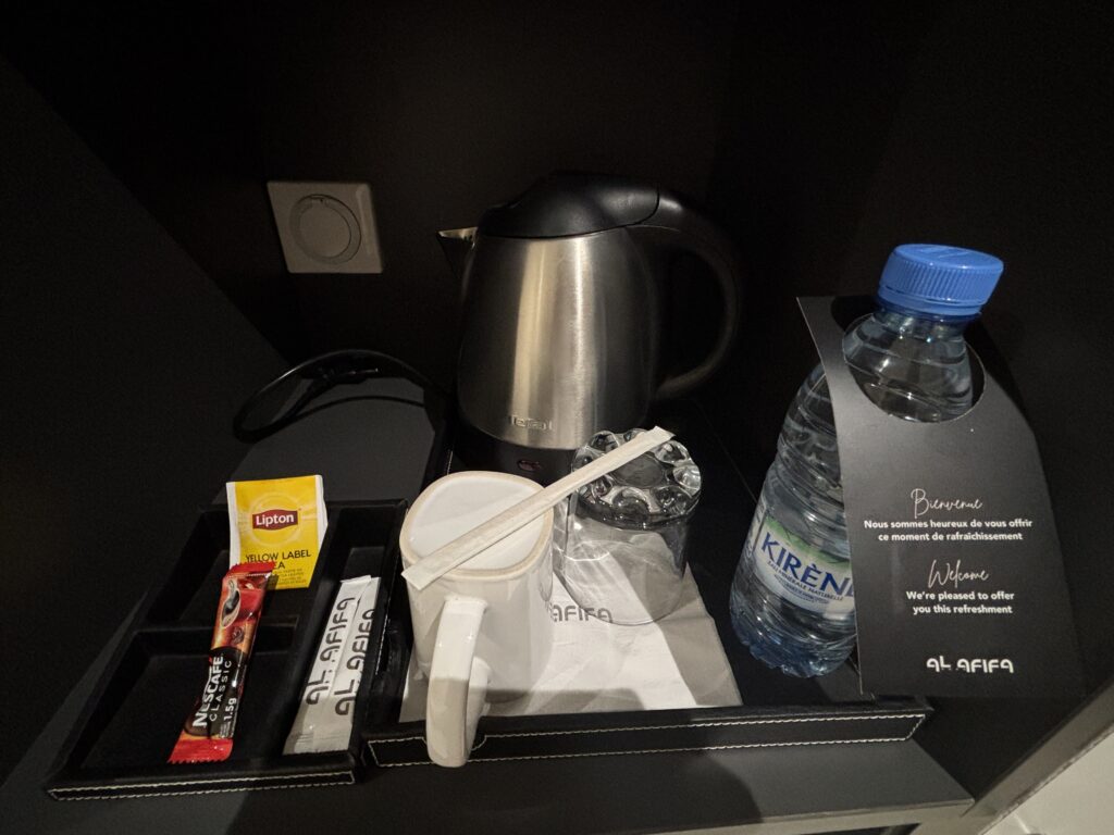 ちょっと南側にあるRysara Hotel4つ星や、東側のHôtel Novotel Dakar4つ星も良さそうでしたが、Rysaraはちょっと高かったのと、Novotelは中心から少し離れていたので、もう少し周辺にレストランやショップのある場所で、新しくてキレイという口コミのHotel Al Afifaに決めましたが、本当にキレイで良かったです!暑いのでお部屋にミニ冷蔵庫はマストだったので、それも決め手でした(Ibisもチェーンホテルで安心感があるけど、中心からちょっと離れてるのと、部屋に冷蔵庫が無い(←ホテルに直接確認しました)のがネックでやめました)。