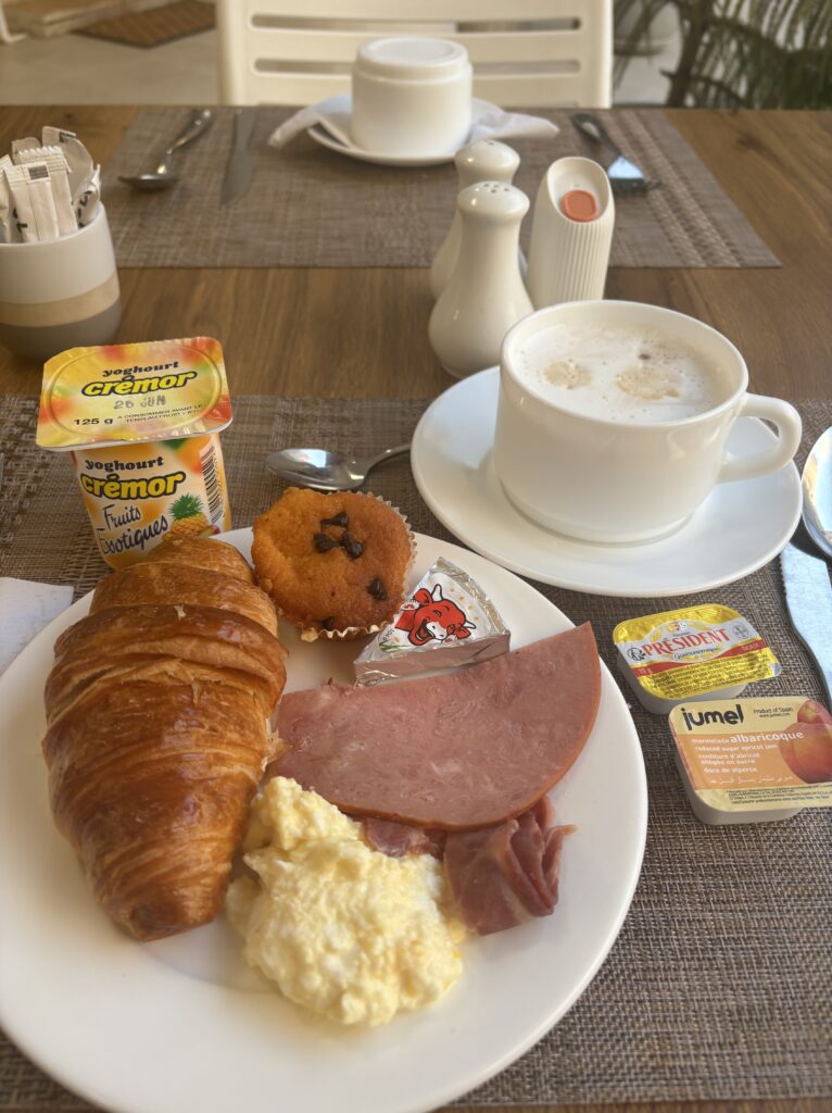 別の日の朝食。フランスの植民地だったからか、クロワッサンが美味しかったです!