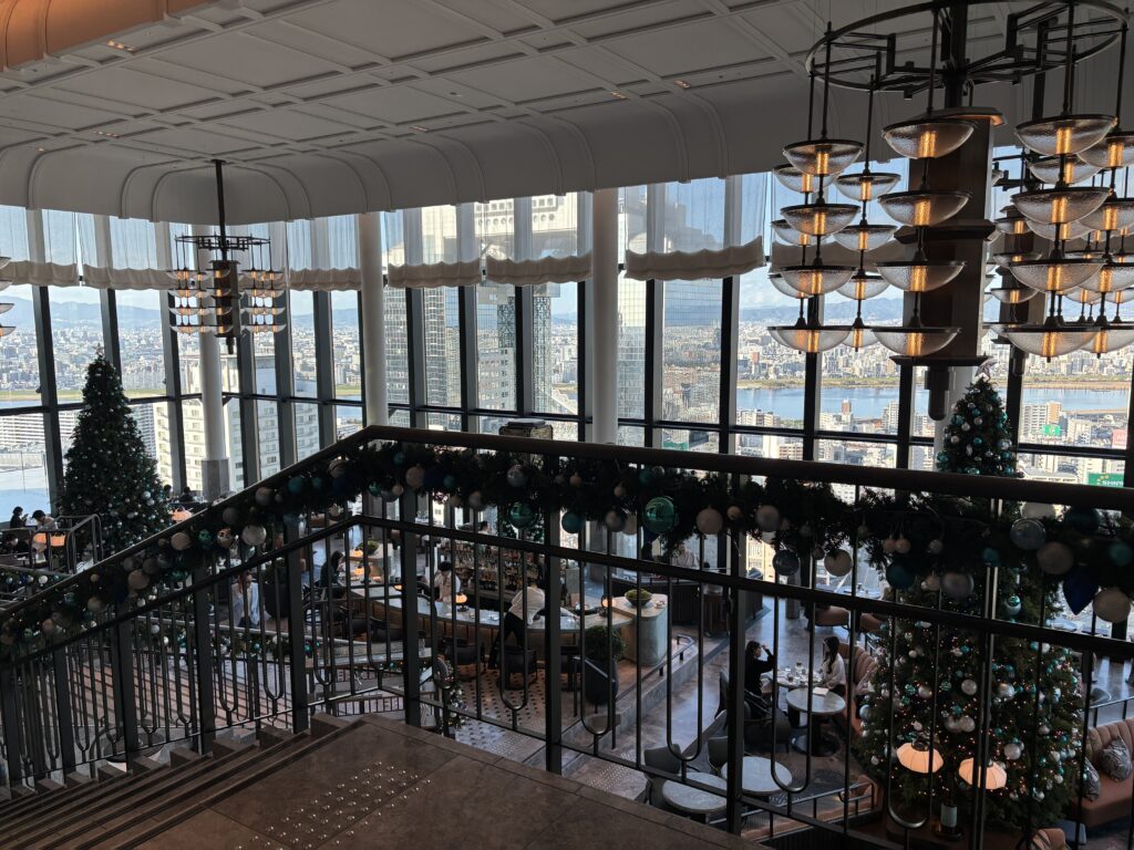 その先にはレストランPeacock Alley。大阪の街並みが眼下に広がり、思わずうわぁ~と感嘆の声が出てしまう程素敵な眺めです。
