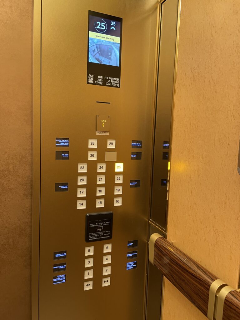 エレベーターは中央の黒い部分にカードキーをかざしてボタンを押します。