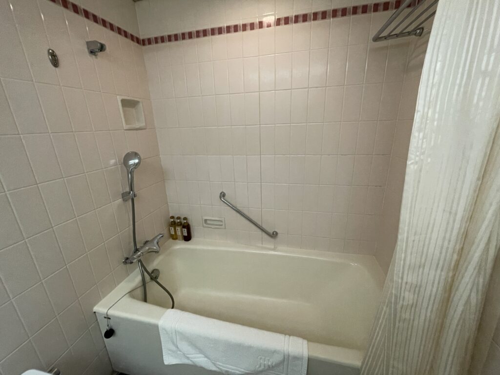 ドア入ってすぐにバスルーム。タイルの壁がなんとなくレトロ感?