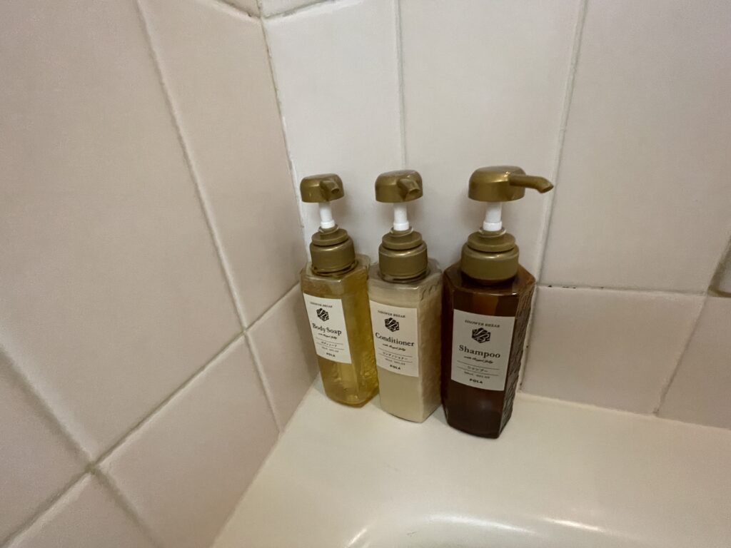 シャンプー、コンディショナー、ボディソープはPOLA。
