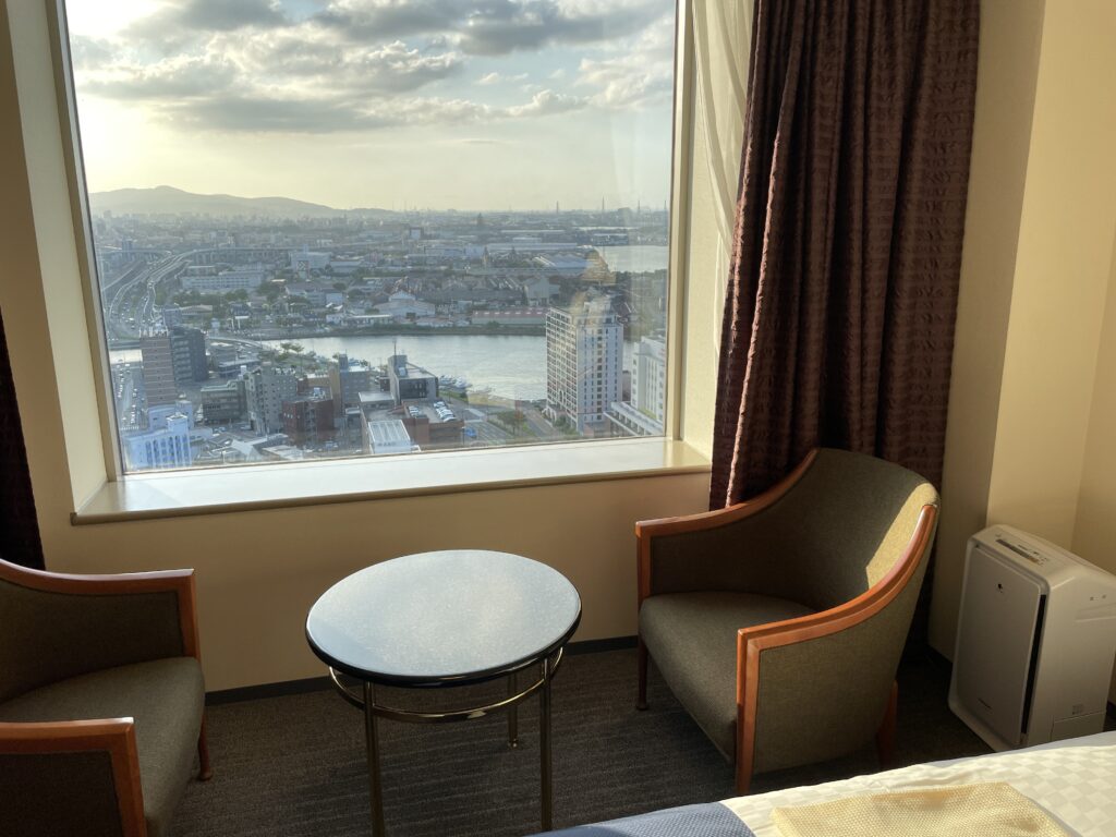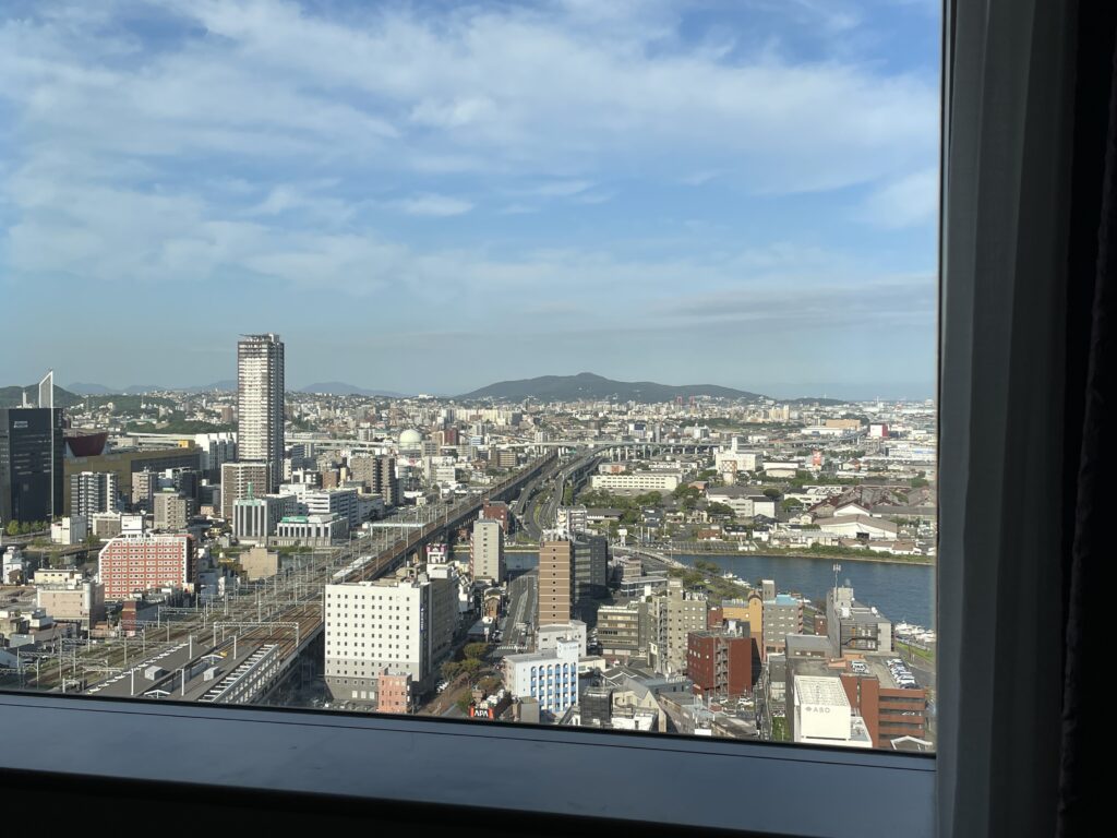 最初から小倉織スーペリアルームを予約したので、24階か25階の高層階確約。朝食も付けました。