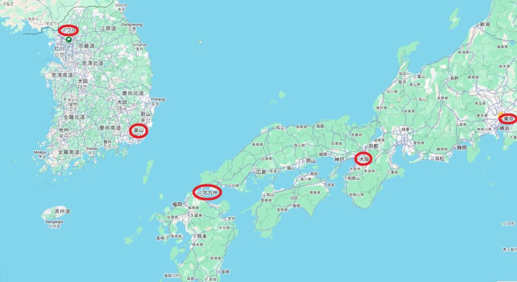 北九州って韓国近いですね~。地図見ると、大阪行くより韓国(釜山)、東京よりソウルの方が距離的には近い!?