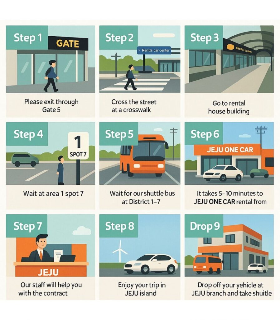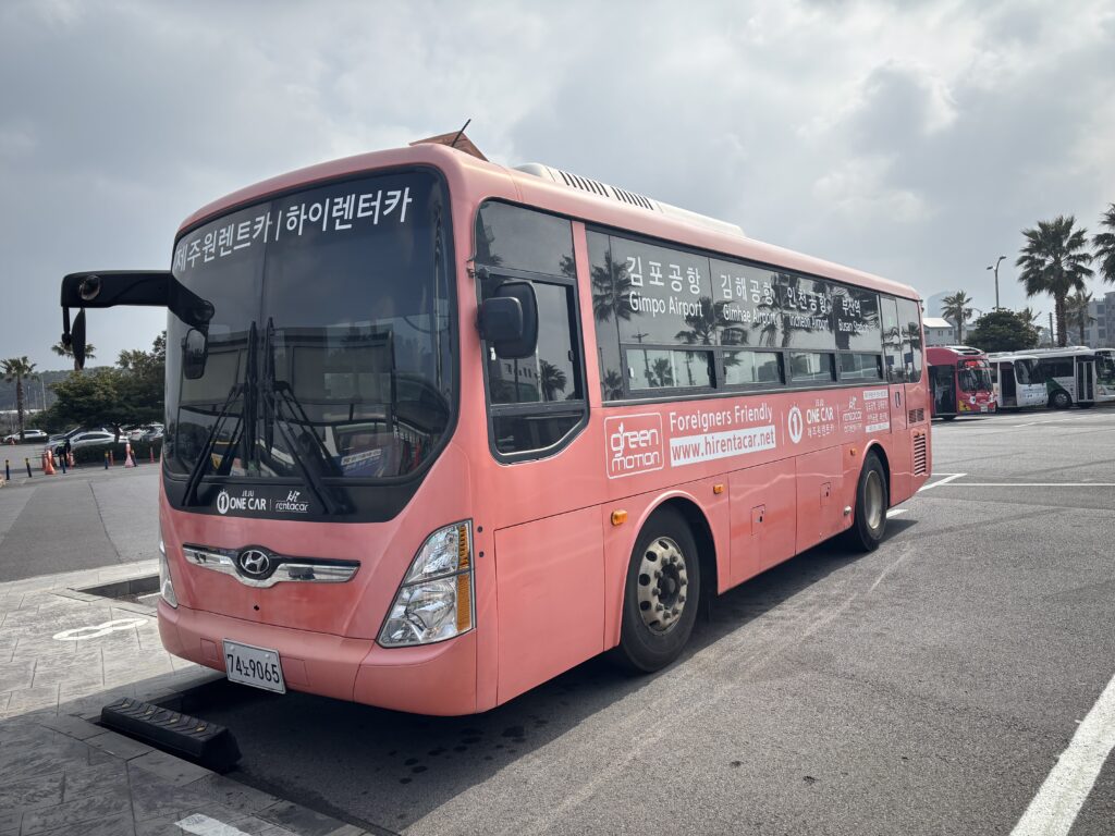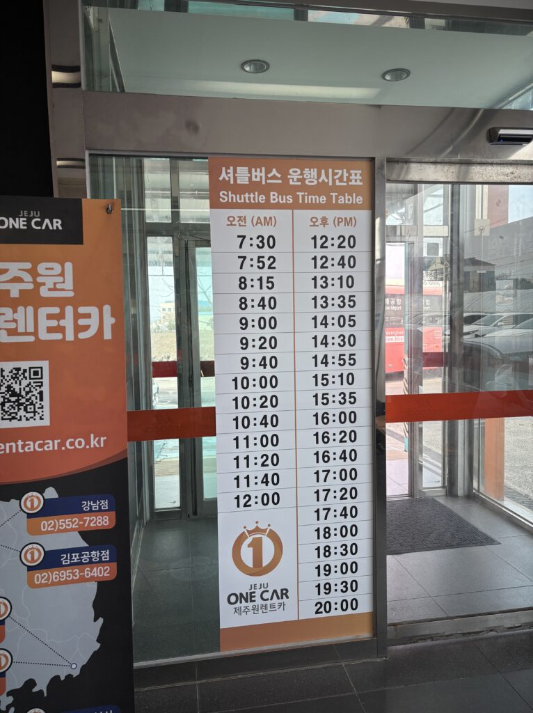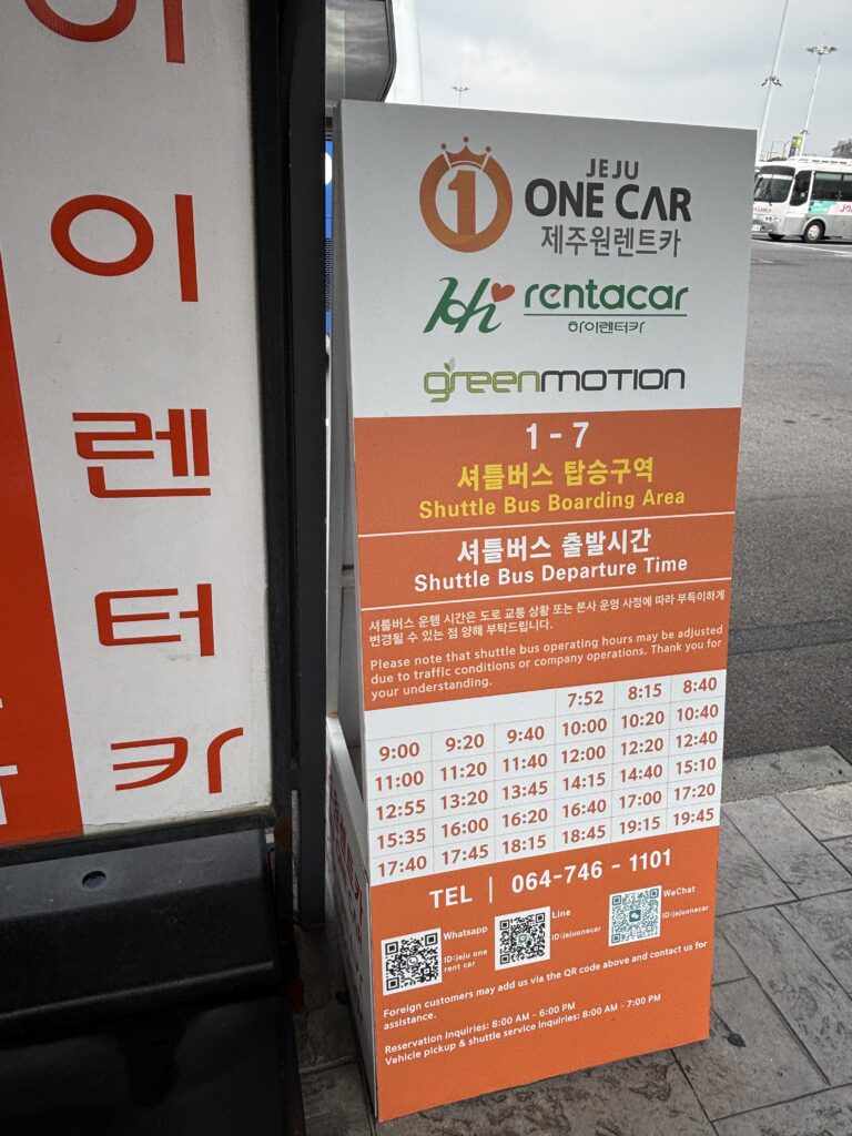 今回借りたJeju One Rent Carは、空港から無料シャトルバスでオフィスへ行きます。他のレンタカーも同様です。レンタカー会社からのインストラクションがわかりやすかったです。