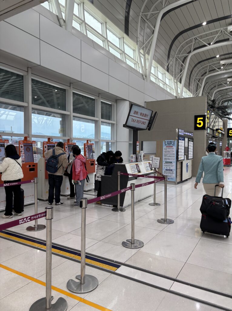 ロッテマート、Olive Young、Osullocなどで買い物した際、免税が受けられます(パスポート提示が必要)。その場で免税してくれる所も多いですが、今回Osullocでお茶は空港での免税手続きが必要でした。チェジュ空港なのであまり参考にならないかもしれませんが、手続きはどの空港でも同じだと思いますので書き留めておきます。