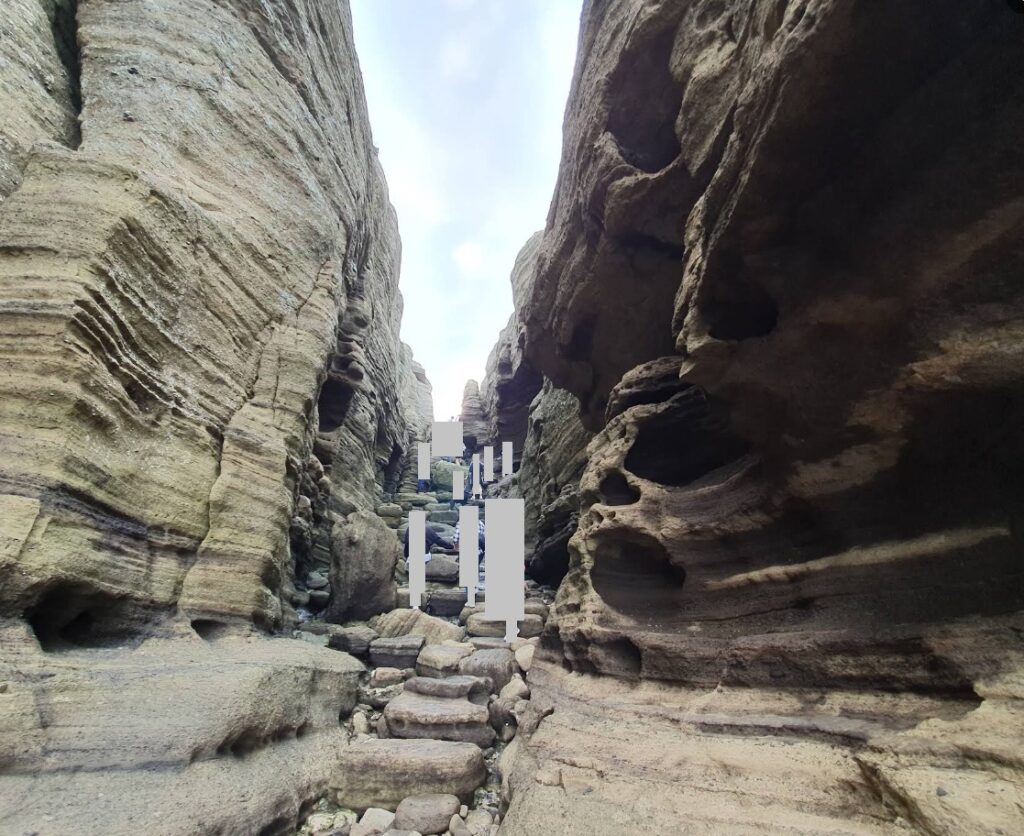 奇岩の海岸なのですが、リサーチ不足で、満潮のため立ち入り禁止で入れませんでした(泣)